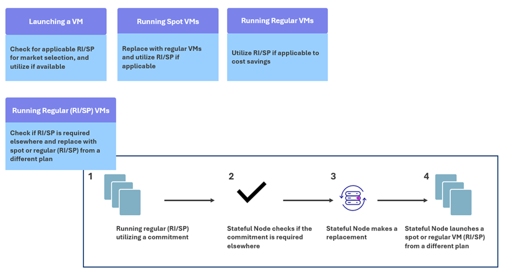 As part of the revert to commitments process, Stateful Node utilizes RI/SP as a wrapper for a regular VM if applicable to cost savings.