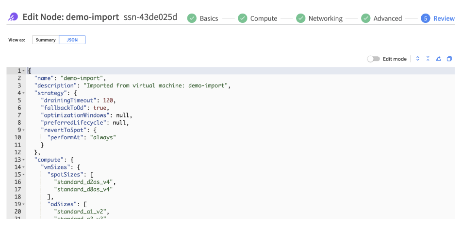 In the Review page you can see a summary of the configuration and edit if necessary.
